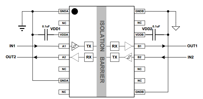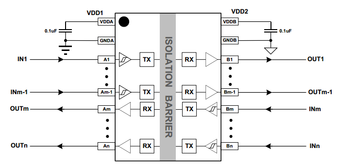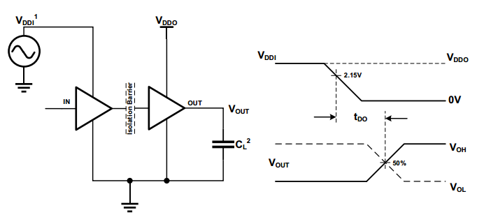 1. VDDI = 輸入側(cè) VDD, VDDO = 輸出側(cè) VDD