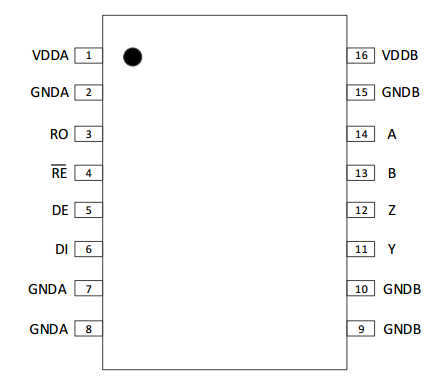 接收器輸入短路或開路,或掛接在終端匹配傳輸線上的所有驅(qū)動(dòng)器均處于禁用狀態(tài)時(shí)(idle),產(chǎn)品可確保接收器輸出邏輯高電平。這是通過將接收器輸入門限分別設(shè)置為-50mV 和-200mV 實(shí)現(xiàn)的。若差分接收器輸入電壓(A-B)≥-50mV,RO 為邏輯高電平;若電壓(A-B)≤-200mV,RO 為邏輯低電平。當(dāng)掛接在終端匹配總線上的所有發(fā)送器都禁用時(shí),接收器差分輸入電壓將通過終端電阻拉至 0V。依據(jù)接收器門限,可實(shí)現(xiàn)具有 50 mV 最小噪聲容限的邏輯高電平。-50 mV 至-200 mV 門限電壓是符合±200 mV 的 EIA/TIA-485 標(biāo)準(zhǔn)的。